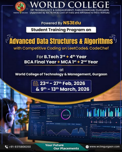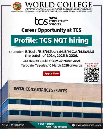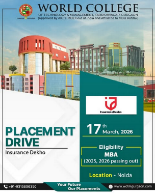 The Training & Placement Department of World College of Technology & Management (WCTM) is organizing a Placement Drive with InsuranceDekho for MBA students of the 2025 & 2026 passing-out batch.