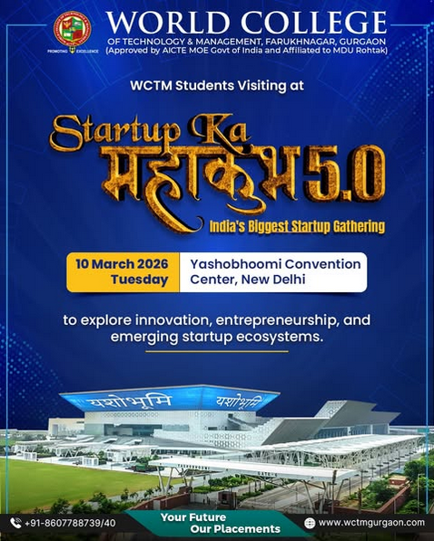 Our students will be visiting Startup Ka Mahakumbh 5.0, India’s biggest startup gathering, to explore innovation, entrepreneurship, and emerging startup ecosystems. This experience will give them valuable exposure to ideas, industry leaders, and future opportunities shaping tomorrow’s world.